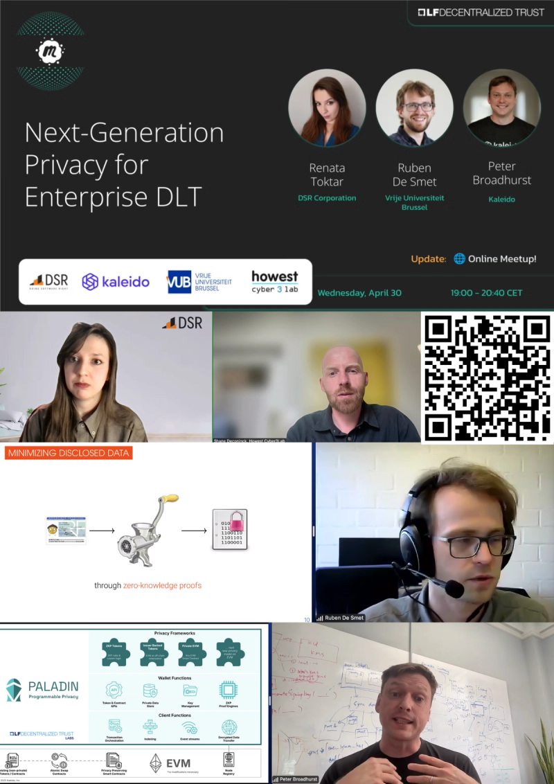 On April 30, 2025, Howest Cyber3Lab brought the LFDT Belgium community together for a virtual meetup that showcased three practical ways to build privacy‑preserving decentralised applications. In just over 90 minutes, speakers from industry, academia and open‑source projects moved from self‑sovereign identity to zero‑knowledge proofs and, finally, programmable privacy on the Ethereum Virtual Machine (EVM).